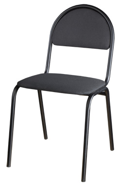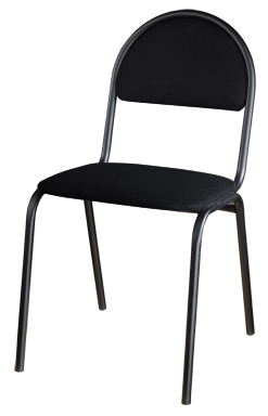 Цельносварной металлический каркас стула изготовлен из тонкостенной круглой трубы Ø22х1,0 мм, с перемычками из круглой трубы Ø16х1,0 мм. Каркас окрашен защитно-декоративным порошковым покрытием. Концы труб каркаса закрыты пластиковыми заглушками. Сиденье и спинка стула полумягкие, выполнены из фанеры 9мм, обтянуты поролоном 20 мм и мебельной тканью, либо мебельным кожзаменителем. К каркасу они крепятся при помощи саморезов через металлические штампованные пластины. Допустимая нагрузка 100 кг.