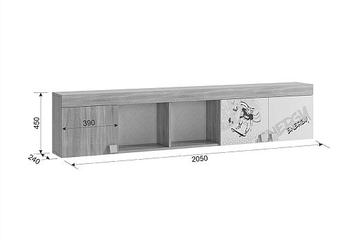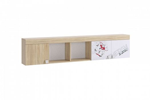 В закрытые шкафы и открытые ниши поместятся все учебники книги и сувениры. Эффектный принтерный рисунок на фасадах выдержан в общем стилистическом решении. Рисунок устойчив к истиранию и ультрафиолету. Можно повесить между шкафов над софой или использовать как самостоятельное изделие