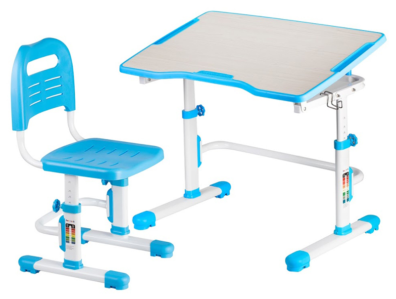 Стол и стул могут быть легко отрегулированы по высоте, что позволяет оптимально адаптировать его под соответствующий рост ребенка. Поверхность учебного стола можно наклонять до 60° для удобного письма, чтения и рисования.