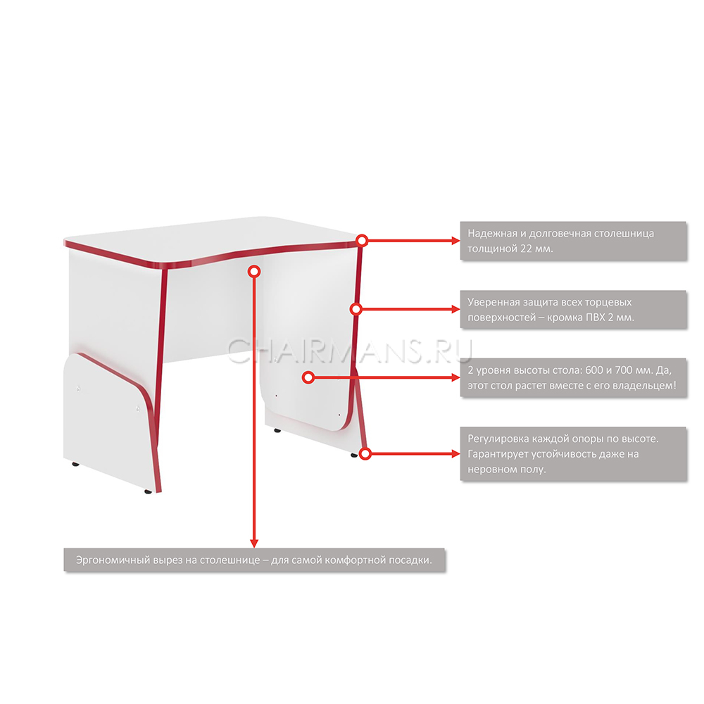 2 уровня высоты стола: 600 и 700 мм. Да, этот стол растет вместе с его владельцем!