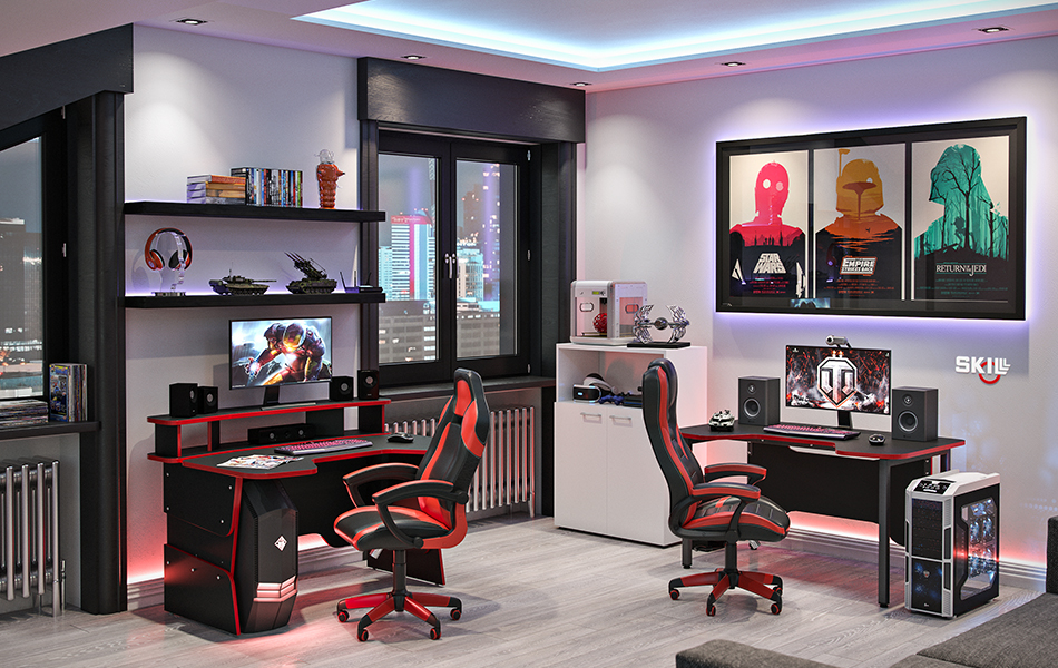 Столешница эргономичная из ЛДСП т. 22 мм, фронтальная панель эргономичная из ЛДСП т.18 мм. Цвет - Антрацит, кромка ПВХ т.2 мм, цвет - Красный.