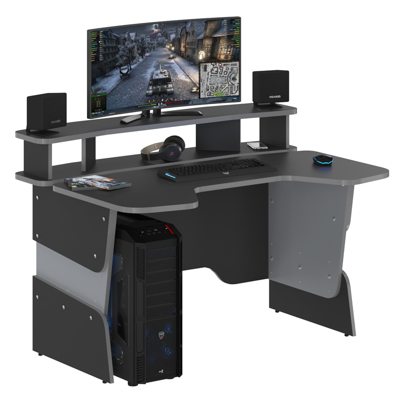 Столешница эргономичная, надставка для мониторов из ЛДСП т. 22 мм. Между надставкой и столешницей есть зазор 50 мм.