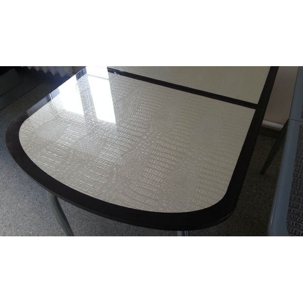 Уникальное соотношение цена/качество. Итальянское закаленное стекло, окрашенное керамическими красками Ferro. Безопасная фаска Safe face, применяемая только на дорогих моделях столов. Итальянское зеркальное хромированное подстолье Polished mirror. Вставка стола системы Butterfly. Надежная индивидуальная упаковка Nomapack, разработанная специально для транспортировки стеклянных изделий.