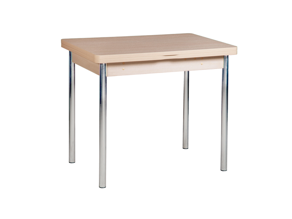 «Орфей 1.1» – обеденный стол с возможностью увеличения столешницы в 2 раза. Вместительную нишу для хранения кухонных мелочей оценит любая хозяйка, а металлические стоевые подчеркнут современный стиль обеденного стола.