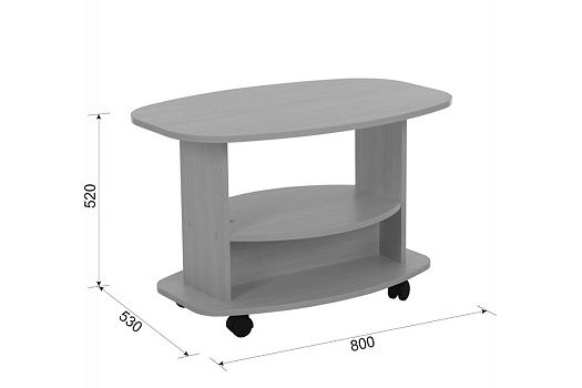 Состоит из: стола на колесных опорах, полки. Изделие симметричное.
